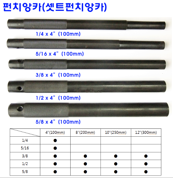 앙카볼트 규격 및 기준홀(세트앙카)