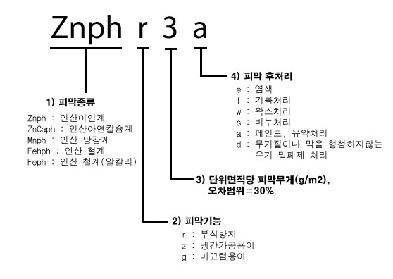 인산염 피막 종류와 명칭, 사용용도, 피막분류코드 읽는 법