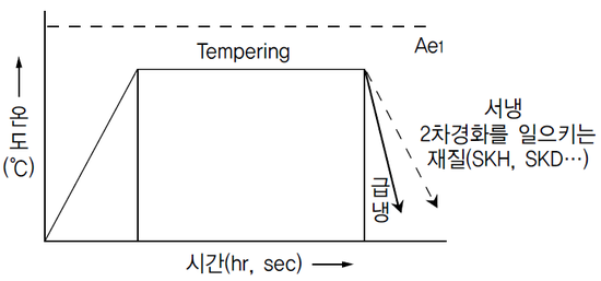 강의 결정입자를 미세하게 만들어 강의 성질을 조정하여 강인성을 향상시키는 조작이다. 일반적으로 Quenching하여 경화된 강을 400℃ 이상의 온도에서 Tempering하여 Troostite&Sorbite 조직으로 한 것을 말한다.