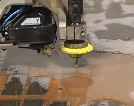 : 워터젯 절단 가공 방식은 초고압의 물을 쏘아 압력에 의해 절단가공을 하는 방식이다.