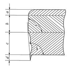 b) 전단면 : 깔끔하게 전단된 면으로 직각이고 면이 고르고 평탄이 좋다. 전단면이 넓은 것이 바람직하다. 두께의 25~50%를 차지한다.