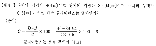 : 다이와 펀치 사이의 갭을 표시하는 것으로 보통 %로 표기한다.