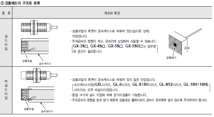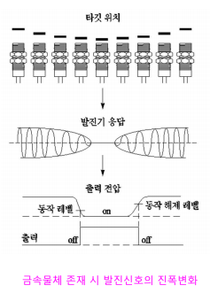 유도형 또는 고주파 발진형 근접센서는 금속물체 검출에 사용되며, 특히 검출대상이 자성체인 경우 검출 검토가 양호하고 검출 거리도 길다.