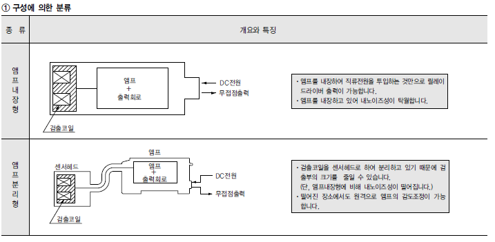 검출거리에 제약 금속 물체만 검출 금속박판물체에 사용곤란 |