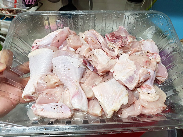 2. 닭을 우유에 재운다. 육질을 부드럽게 하고 닭 잡내를 잡는다. 10분~30분 재운다.